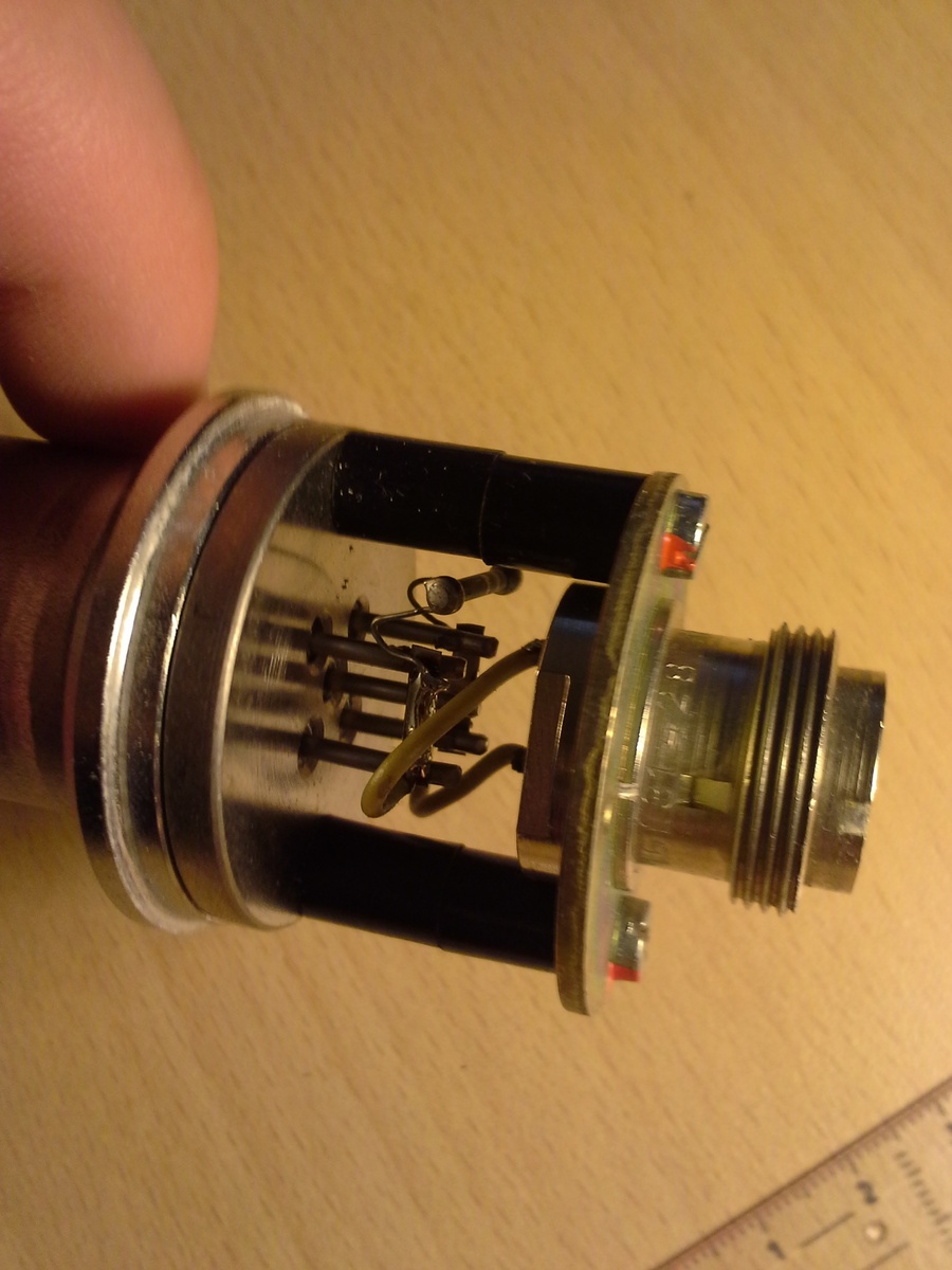 Ist eine Piraniröhre, die beiden Elektroden in Bild 3 haben für mich allerdings nach Penning ausgesehen http://www.progforum.com/archive/index.php/t-7101.html http://forum.electronicwerkstatt.de/phpBB/Elektrische_Probleme/anschluss_eines_pirani_vakuummeters-t60222f6_bs0.html