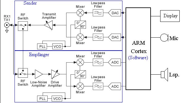 @ W.S. Ich kann das nachvollziehen. Eine frei verfügbare Bibliothek für SDRs mit Filtern und weiteren Software-Modulen würde die Möglichkeit schaffen, darauf aufzubauen und sich seine eigene SDR-Software zusammenzustellen. IMO herscht da momentan ein Mangel. > Nur der zweite Punkt ist mir noch obskur. Wie wärs mit dem Weaver Prinzip (dritte Methode)? Dazu wird das Signal ein zweites mal gemischt und nochmals gefiltert, dann addiert oder subtrahiert, je nach Seitenband. Die beiden zusätzlichen Mischer werden wieder mit einem um 90° versetzten Oszillator-Signal betrieben. Zuerst werden zwei Tabellen für Sinus und Cosinus erstellt. Je nach Anzahl der Stützpunkte kann mit Hilfe der zwei getrennten Tabellen die Phase in relativ feinen Schritten (0.1°?) verändert werden wie bei einer DDS. Es gibt zwei Varianten: 1. Mischen auf Null mit relativ einfacher Filterung, kommt mit weniger Rechenleistung aus. Nachteil: Es entsteht eine kleine 20Hz breite Kerbe um Null, da der DC-Anteil abgetrennt werden muss. 2. Das Mischen auf eine niedrige ZF, dabei entfällt die Kerbe um Null, der Filteraufwand ist dafür etwas höher. Das Prinzip habe ich irgendwo als LTspice-Simulation in der Schublade. Schon mal den Quellcode vom mcHF-Sdr angeschaut? Ich finde, die Software ist recht übersichtlich aufgebaut, es gibt auch schon einige Mods. http://www.m0nka.co.uk/?page_id=623 https://github.com/imoldovavan/mcHF-SDR Der mcHF-SDR ist mir zu aufgeblasen, mir würde CW-Betrieb reichen, wenn dadurch Vereinfachungen möglich wären. Andere hätten gerne digitale Betriebsarten integriert. Gruß, Bernd