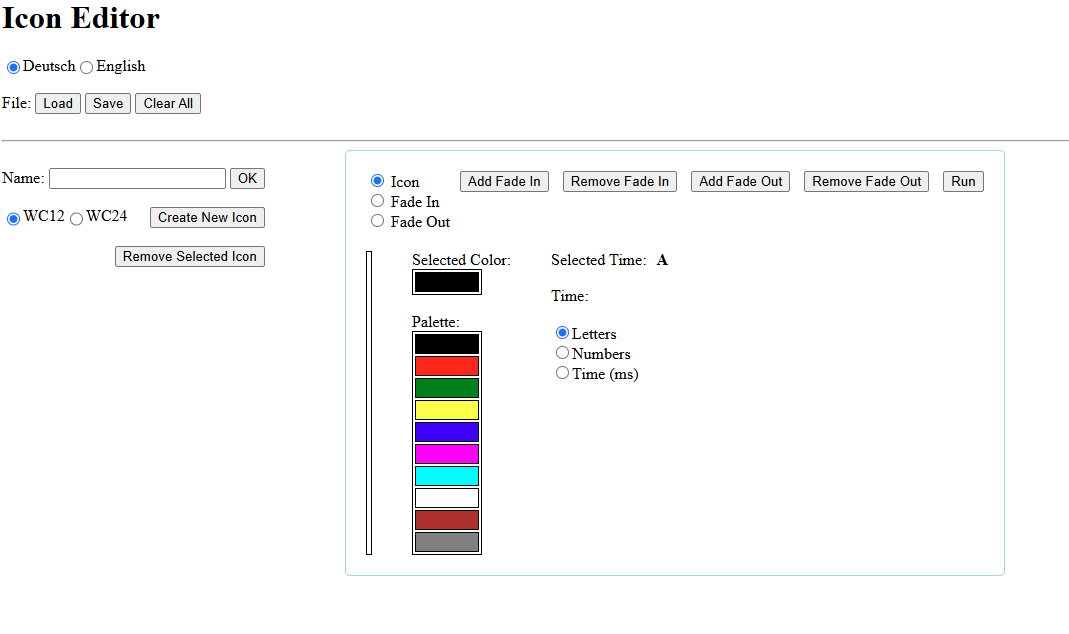Klaus F. schrieb: > Bruno D. schrieb: >> Lieber Schwarm, >> >> ich habe seit einiger Zeit das Problem, dass die Uhr die "eins" nicht >> mehr anzeigt. also aktuell zeigt die Uhr "es ist fünf vor". Wenn ich das >> Display teste leuchten alle LEDs, also auch die "eins". Habe fürs ESP >> und die Uhr die aktuellen Versionen drauf (beim Flashen der HEX-Datei >> zeigt er einen Gap in einer Zeile an) und grad die Hex nochmal geflasht, >> ohne dass das Problem gelöst wäre. >> >> Weil die LEDs aber beim Display-Test leuchten, tippe ich auf einen >> Software-Fehler? Meine, das hat mit dem Update auf die neue Version >> angefangen. >> >> Any ideas? >> >> Guten Rutsch später! Hallo zusammen, meine Uhr (12h) zeigt die gleiche Auffälligkeit nach dem Update auf 3.0.1. Im Forum habe ich keine Antwort zu dem Thema gefunden. Gibt es einen Fix für das Problem? Außerdem habe ich ein Problem mit dem Icon Editor. Wenn ich den Öffne wird mir eine Oberfläche angezeigt, mit der ich nicht arbeiten kann? Siehe angefügtes Bild. Was mache ich falsch mit dem Editor? Vielen Dank für eure Hilfe! Viele Grüße, Julian