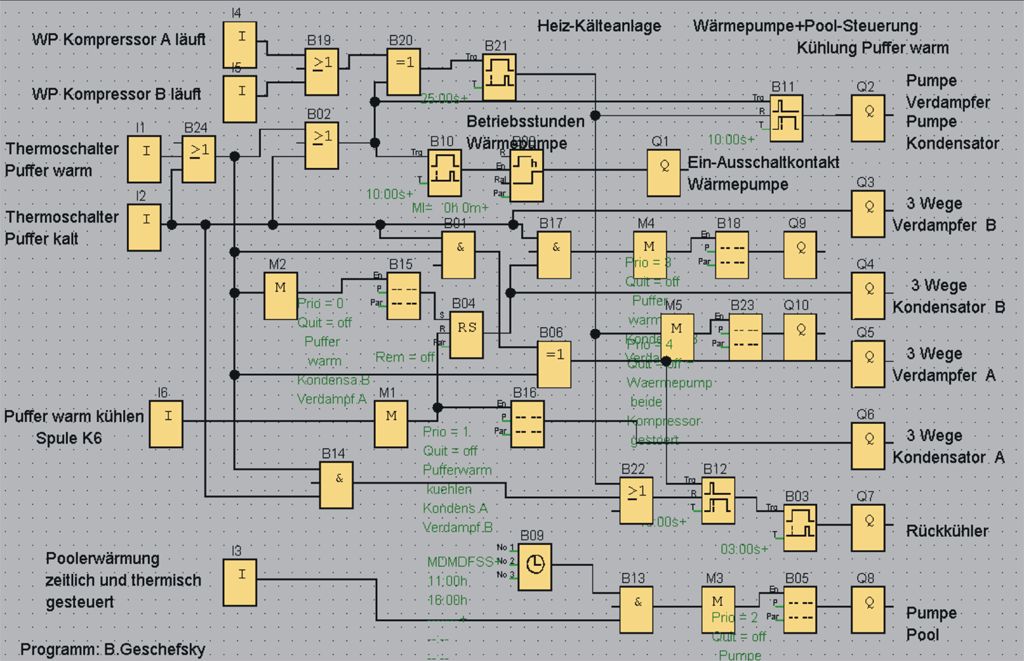 Hallo zusammen Es gibt ja von Siemens kleine SpeicherProgrammierbareSteuerungen oder kurz SPS. Diese nennen sich LOGO!. Diese SPS kann man mit deren Software mit Blöcken programmieren. Anbei seht ihr ein Bild eines "Programmes" Es gibt Outputs, Inputs, logische verknüpfungen von Signalen etc. Ich habe mich nun gefragt, wie so etwas im hintergrund funktioniert. Wie würde man so etwas auf Mikrocontroller ebene, also innerhalb der SPS, programmieren? und was für daten erzeugt die PC Software? Ich habe an eine riesige Wahrheitstabelle gedacht. Wobei diese keine Verzögerungen und keine Zähler enthalten kann, welche die erwähnte SPS kann. Danke schonmal Gruss eure Krähe!