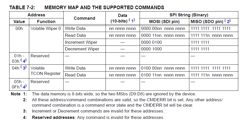 Nabend an alle, im Moment arbeite ich mit einem dgitalem Poti MCP41HV51 50Kohm. Die Kommunikation läuft soweit und das setzen mit inc/decrWiper funktioniert. Was mir Schwierigkeiten bereitet ist das auslesen. Und zwar mich beschleicht das Gefühl, dass ich das Ding zwar auslesen kann aber nur im Sinne, das man weiß, das ein Write/Inc/Dec-Wert korrekt gesetzt worden ist aber nicht auf welchen Wert genau es gesetzt wurde. Ist das Korrekt oder falsch?? Gruß chris