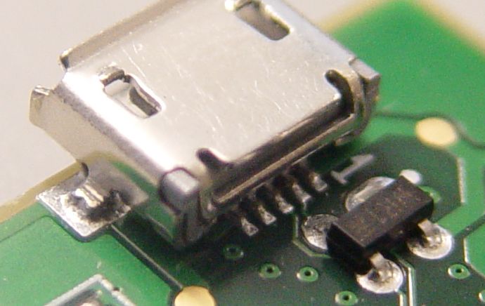 Naja, es ist ja wohl nicht zuviel verlangt, eine Mico-USB Buchse möglichst mechanisch stabil anzulöten, dafür gibt es genügend passende Buchsen mit großen Lötnasen am Gehäuse. Die Pins sollte mechanisch gar nichts halten müssen. Beispiel http://www.digikey.com/product-detail/en/10118193-0001LF/609-4616-2-ND/2785388 Das Ding hat sogar Haltenasen, die als THT verlötet werden, das ist nochmal deutlich stabiler!