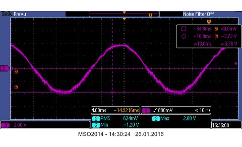 Hallo, ich habe folgendes Problem: Ich verwende den AD7892ANZ-1 zur Spannungsmessung im +/-5 Volt-Betrieb, d.h. V_IN1 und V_{IN2} in der angefügten Eingangschaltung verbunden, mit Bezug auf AGND. Zurzeit verwende ich die interne Referenz, welche über einen 0.1 µF Kondensator mit AGND verbunden ist. Vor dem ADC verwende ich AD820AN als Impedanzwandler. Mein Problem ist nun, dass am Eingang des OPV ein schönes Signal anliegt, am Ausgang jedoch ein Rauschen auftritt, welches in der Abbildung dargestellt ist. Gemessen sollen Spannungen mit der Frequenzen im Bereich 50 - 60 Hz werden. Impedanzwandler wurde schon durch aktiven Tiefpass ersetzt, wobei dies auch keine wesentlich Verbesserungen zeigte. Meine Frage nun, woher kommt dieses Rauschen bzw. wie könnte man dies verhindern. Zusatzinfo: Das Rauschen tritt nur auf wenn der Ausgang Impedanzwandler mit dem Eingang ADC verbunden wird, ansonsten gibt der OPV ein schönes Signal aus. Vielen Dank. mfg