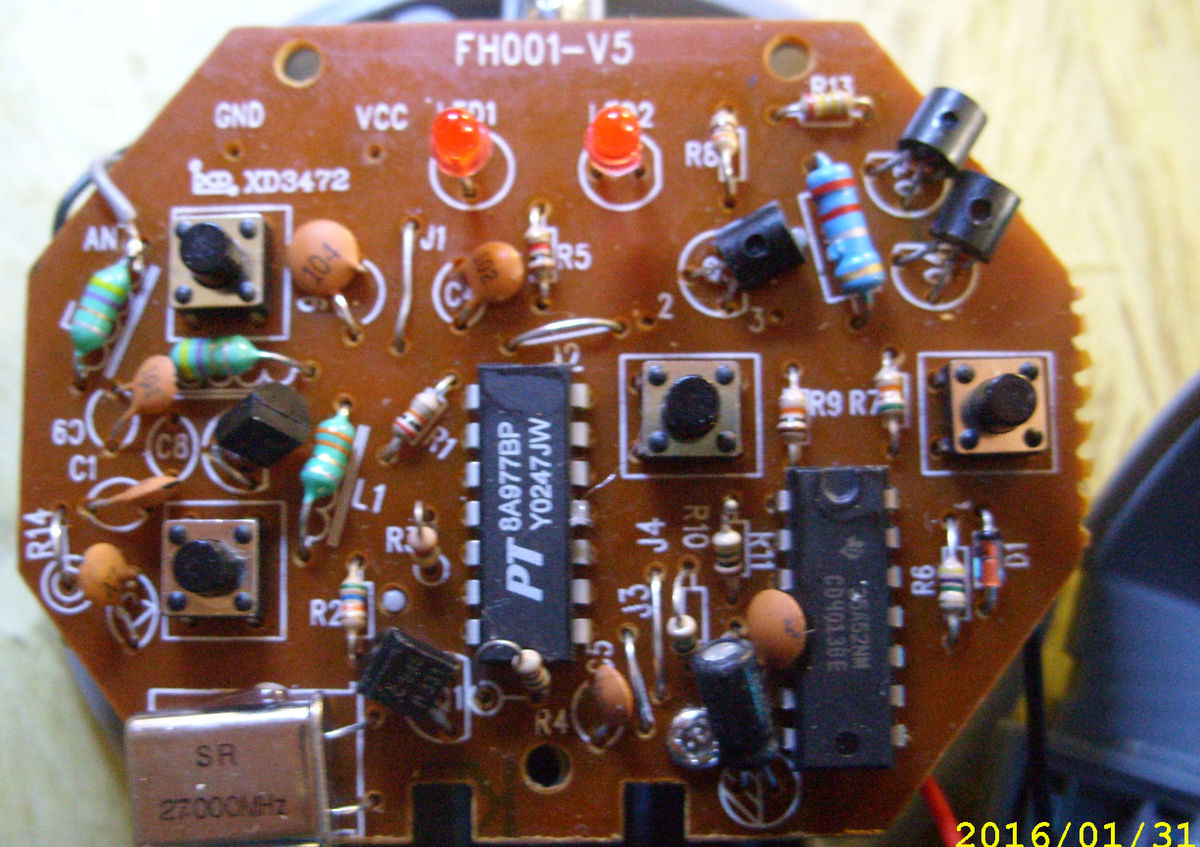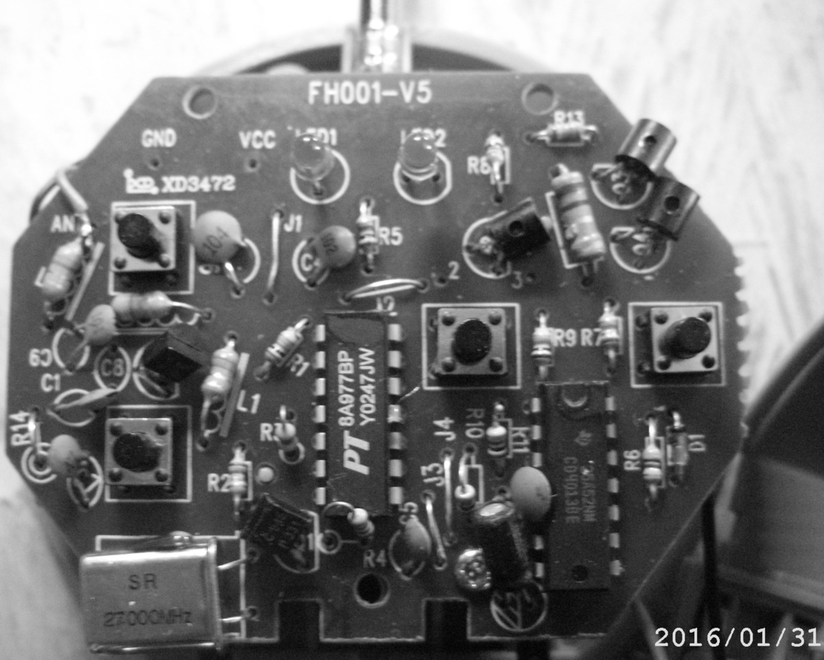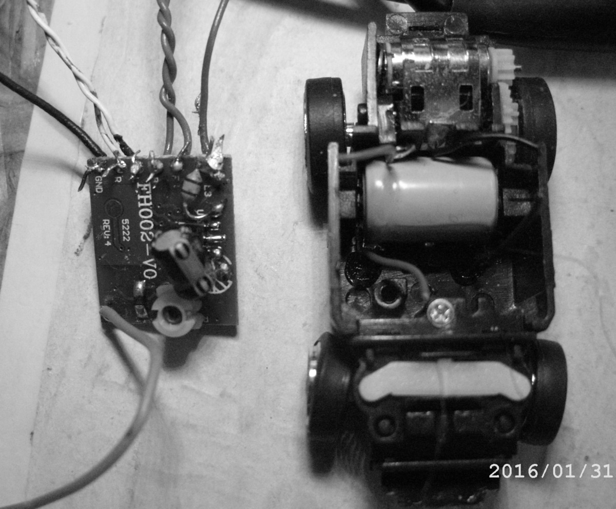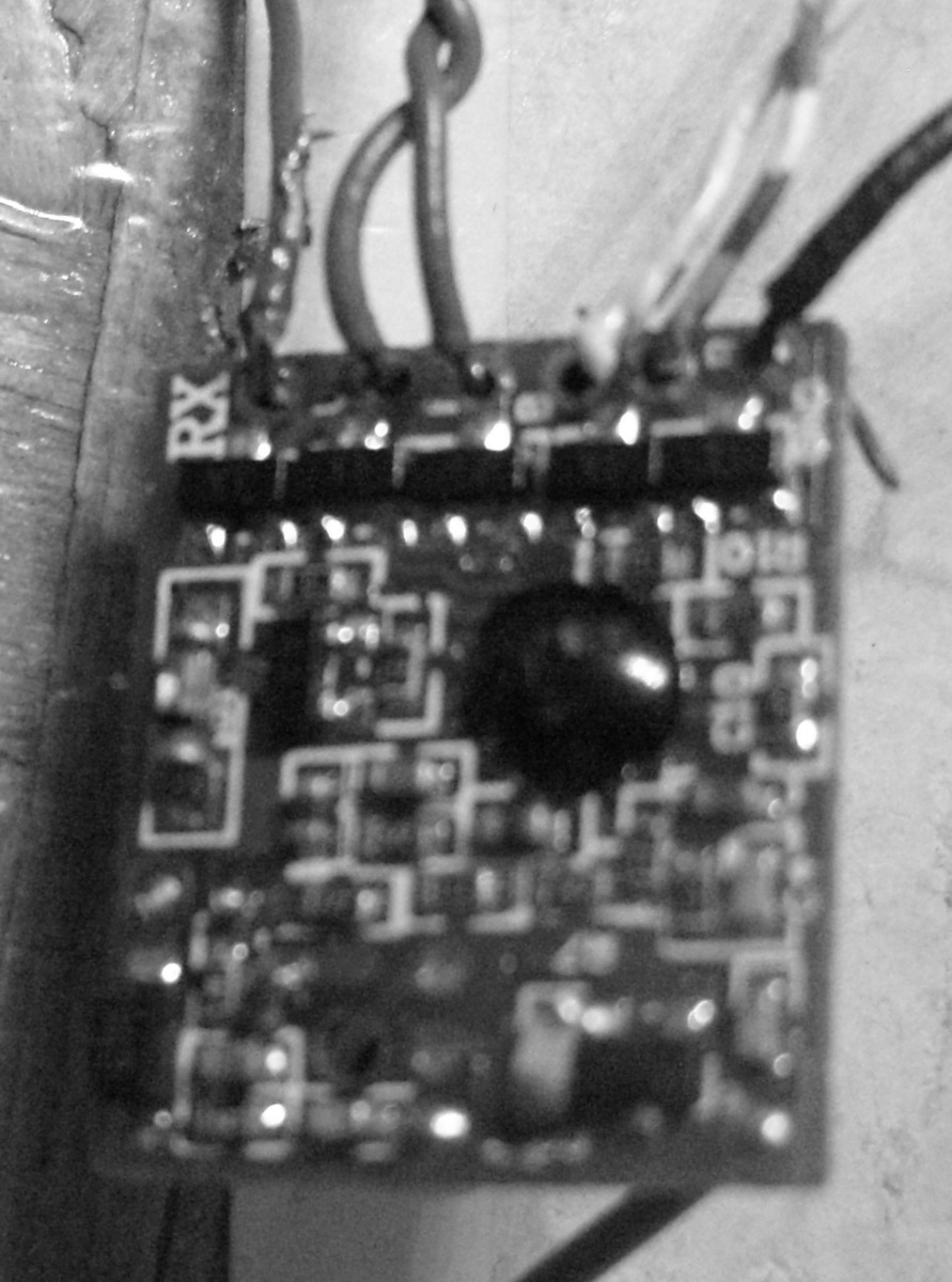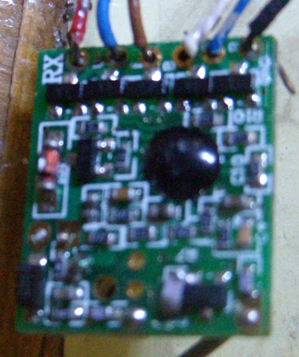 Hallo! Ich habe vor ewigen Zeiten mal sowas hier gekauft, (für die Katze als Spielzeug). http://www.dansdata.com/minigtr.htm Anbei die Photos zeigen Sender, Auto mit ausgebauten Empfänger und die Empfänger-Rückseite (sry f. d. schlechte Qualität, man sieht zumindest, das der Empfangs-IC zugekleister wurde) Im eingebautem Zustand funktionierte das Teil. Auf Grund der auch im Artikel beschriebenen unterirdischen Laufzeit von anfänglich ~90sek (zum Schluss waren es noch 10sek) wollte ich die TX/RX-Kombi für ein anderes Projekt verwenden. (thread "Motor-Ansteuerung") Nun kommt da partout nix an. Weder mit Multimeter noch mit dem Oszi (10MHz) kann ich am Empfänger irgendeine Reaktion auf die Sendereingaben erkennen. Mit dem Sender kann ich aber nach wie vor noch ein anderes RC-Modell (auch nur simple ohne proportioaler Steuerung) steuern. Habe mit MM und Oszi zw. Vorwärts/Rückwärts, Links/Rechts, Vorwärts/GND, Rechts, GND, usw. gemessen und sehe keinen einzigen Ausschlag im Oszi/MM. Messe ich nur falsch?