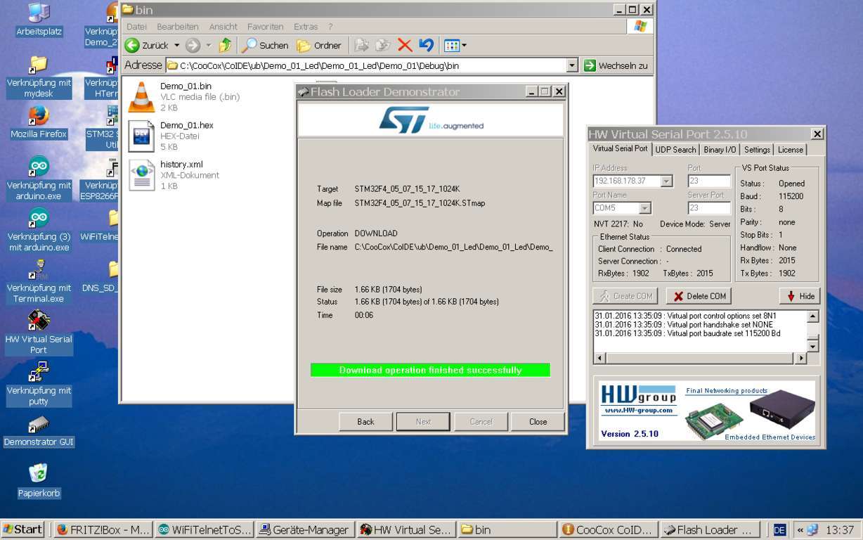 Nach dem comp. und bilden des .bin zum flashen wird der virtuelle