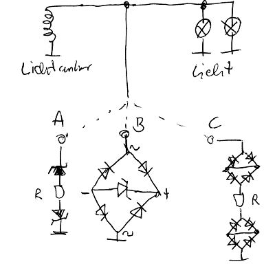 Ein Brückengleichrichter kann hier ja leider nicht funktionieren, weil die Masse komplett über den Rahmen läuft. Gibt es eine Alternative die nur die Phase gleichrichtet?