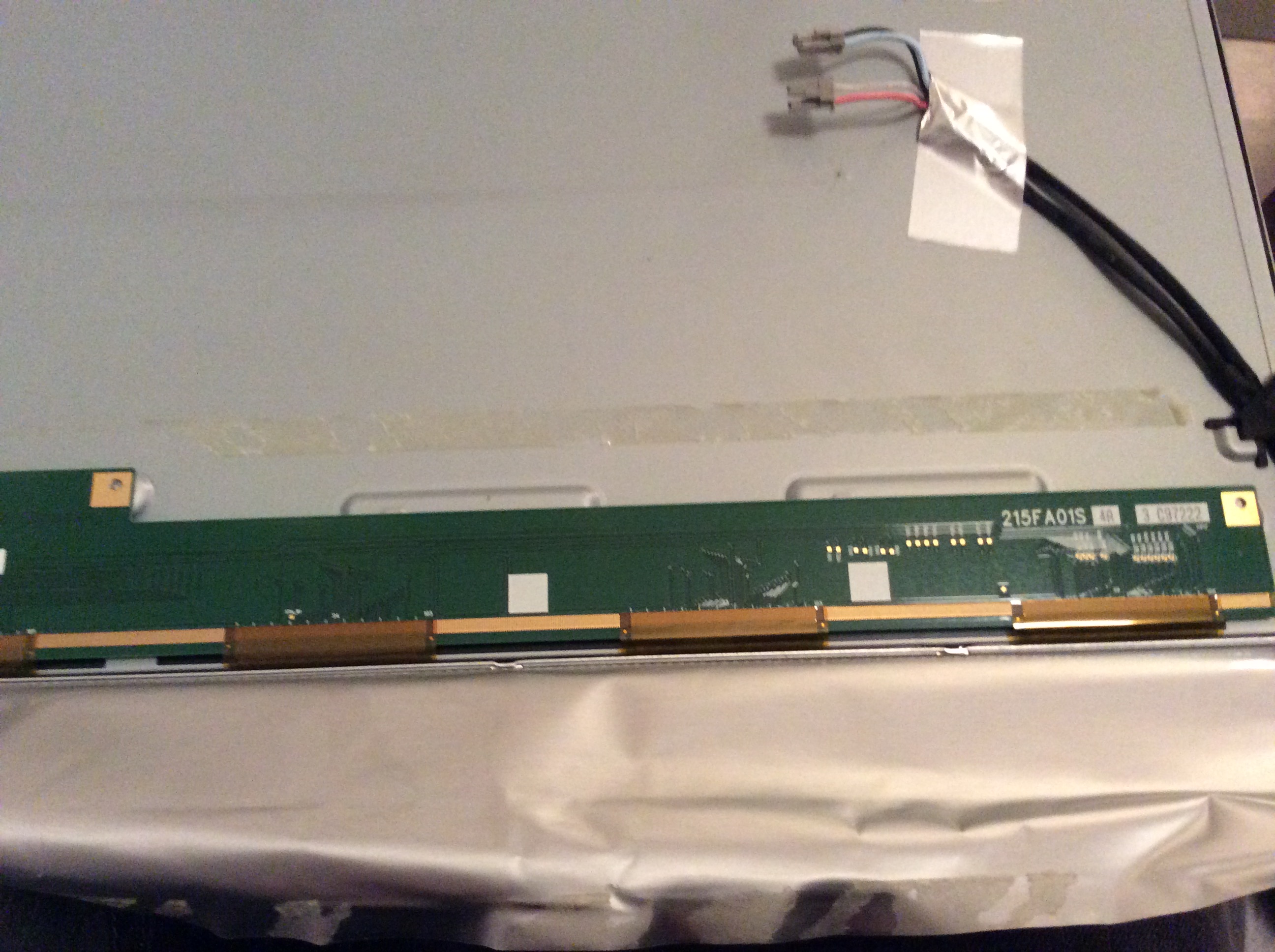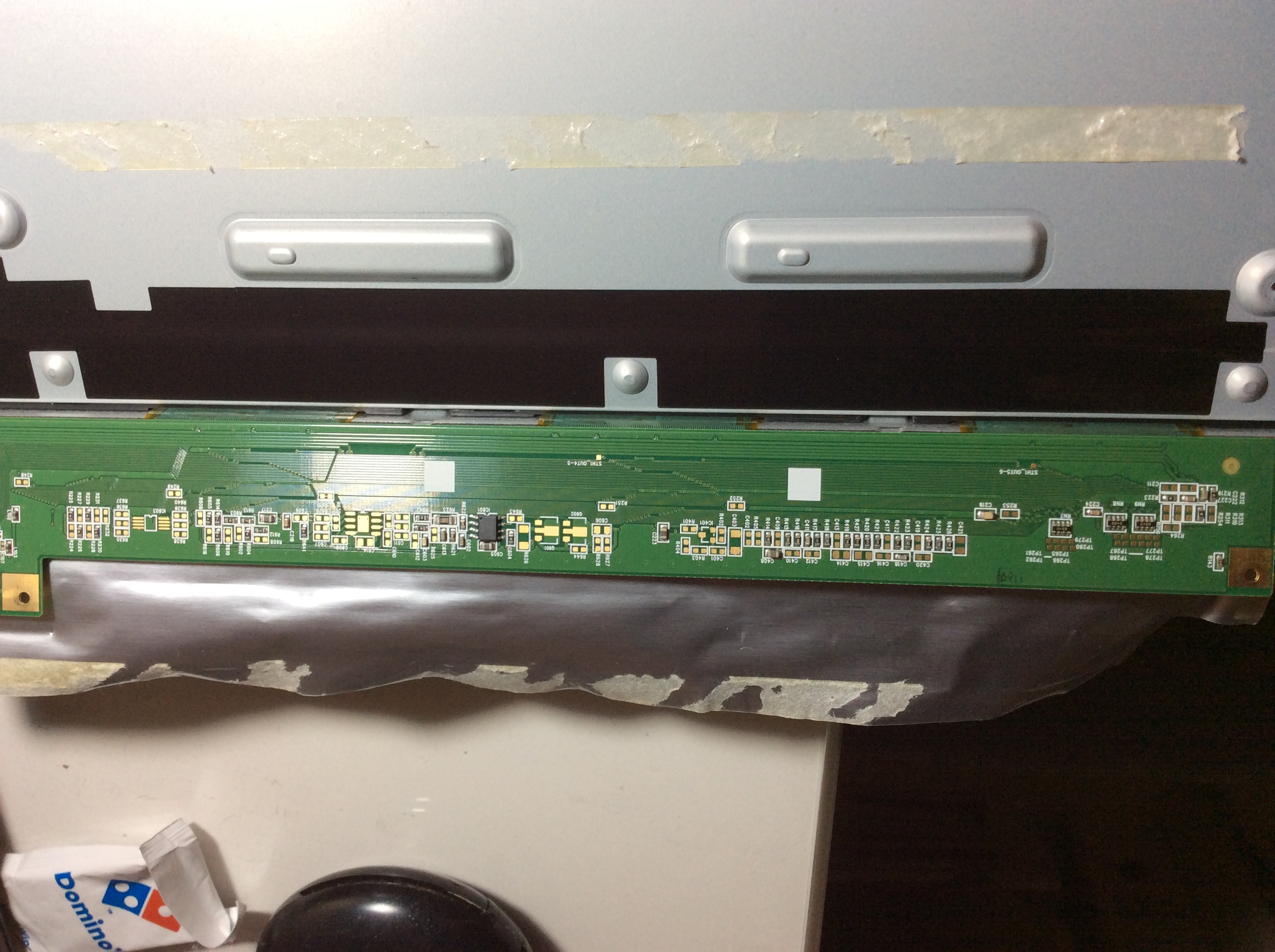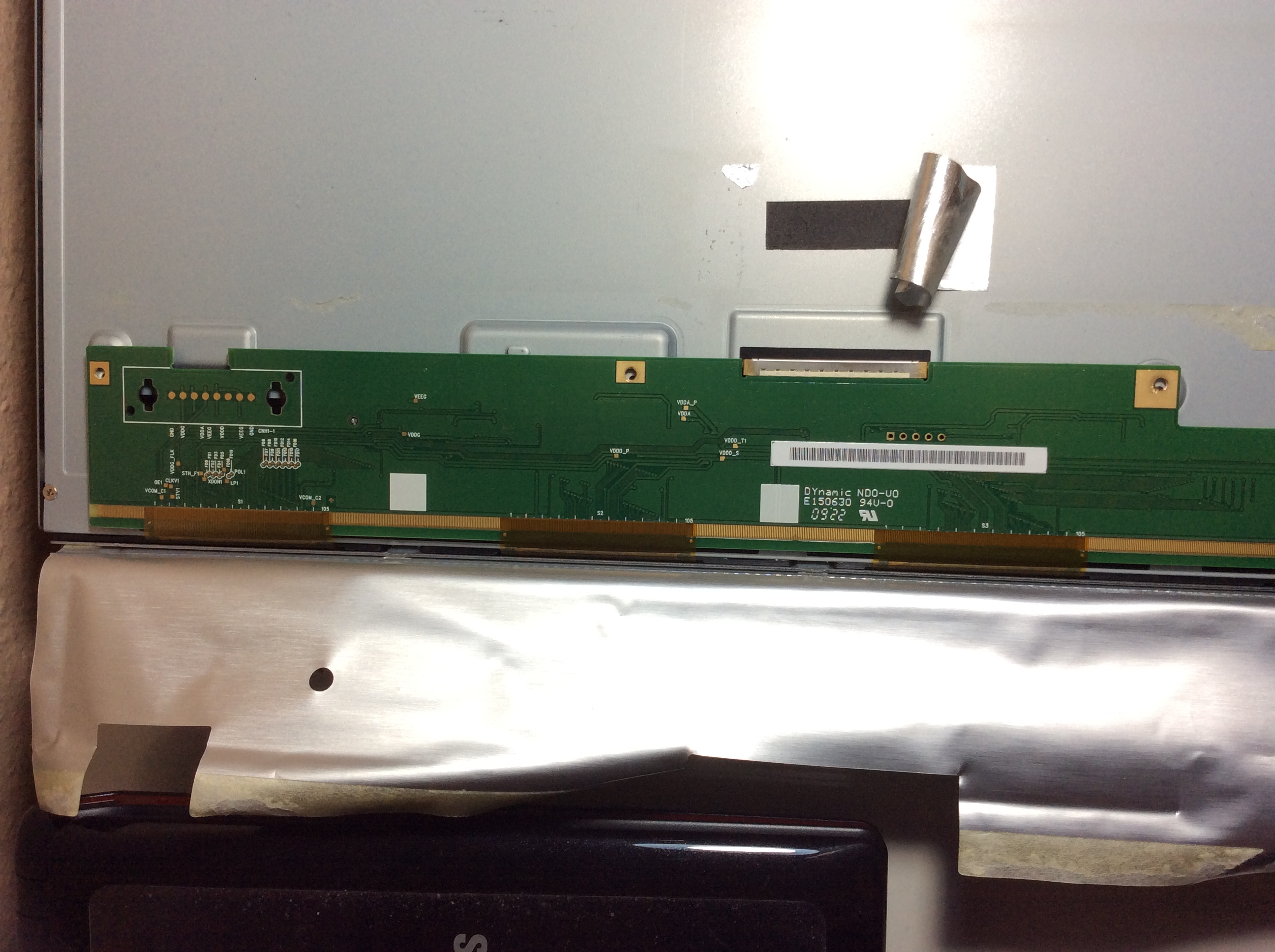 Die Bilder bringen allesamt nichts, weil sie nicht die Elektronik des Panels zeigen, sondern nur das Netzteil mit "Inverter" für die Hintergrundbeleuchtung und die DVI-zu-LVDS-Wandlerelektronik. Die Elektronik des Panels ist Bestandteil des Panels (und anders als bei Fernsehern gibt es in solchen Monitoren kein separates "TCON"). Wie bereits beschrieben sitzt die Panelelektronik am anderen Ende des Folienleiters, den man auf "Foto 2" an CN107 sehen kann. Das Bild vom Monitorbild ist nutzlos, da es vollkommen verrauscht ist.