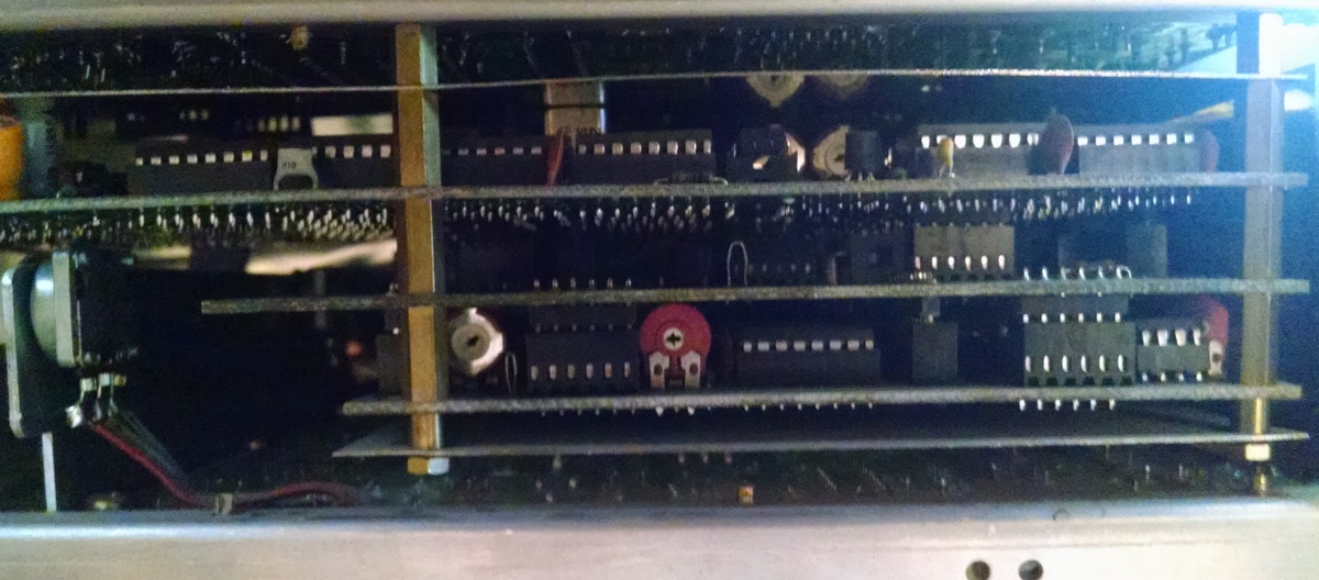 Genau auf dieser Platine am rechten Rand habe ich auch den Schalter vermutet. Dort befindet sich aber nichts. In der Nähe der gebogenen Drahtbrücke auf der mittleren Platine befinden sich einige augenscheinlich leere Kontakte, kann es sein, dass es verschiedene Revisionen gibt, wo der Schalter eingspart wurde? Oder ist der Schalter in der Mitte der Platine und man muss alles zerlegen?