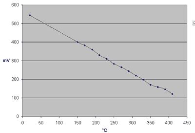 Hallo, Meinst du so: 5V ------- 10KOhm ------ 1N4148 ------ Masse / hier messen Stimmt das so? Ich hab da bei ca.200 Grad eine Durchflußspannung von 450 mV gemessen. In dem Schaubild von Thomas Pfeifer sind aber für 200Grad ca. 250 mV angegeben. Ist eine solche Toleranz normal, oder hab ich irgendeinen Mess, bzw. Denkfehler gemacht? Gruß, Steffen
