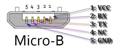 Ich habe das Bild meines microUSB Typ B, wenn ich es richtig zuordne, angehängt. Überall finde ich Bilder aller USB-Stecker-Typen, jedoch kein Bild welches mir zweifelsfrei zeigt wie die Belegung der Anschlüsse kabelseitig ist. Der Stecker hat zusätzlich zu zwei Pins, welche ganz außen sind für die Schirmung, 5 Anschlüße. Wenn ich das "Trapez" der Steckerseite heranziehe, befinden sich 3 Anschlüße auf der kurzen Seite des Trapezes, 2 Anschlüße auf der langen Seite. Ich habe mittels der Durchgangprüfung zwischen den Anschlüßen und der Metallschale der Steckerseite den Anschluß für GND identifiziert. Ein der 3 Anschlüße außen. Ich vermute daher das der 5 VDC Anschluß der Anschluß auf der anderen Seite der 3 Pins ist. Da ich damit die Versorgung der 2 Raspi auf meinen Versuchsaufbau durch die 5 VDc meines umgebauten PC-Netzteils realisieren möchte, bin ich lieber über vorsichtig!