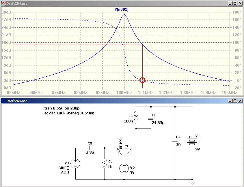 B e r n d W. schrieb: > Die Simulation verdeutlicht den Effekt. Die dabei entstehende AM ist > hier gar nicht so tragisch. Vielen Dank für die asc. Ich habe den BC547C eingesetzt, weil der BF nicht in der lib von LT enthalten ist. Die fft zeigt da aber doch recht deutlich eine AM was ja auch zu erwarten ist. Habe dann mal die Zeitbasis geändert, Bild 002 und dann stimmt da etwas nicht. Was bedeutet eigentlich ;ac dec 100k 95Meg 105Meg ? LG