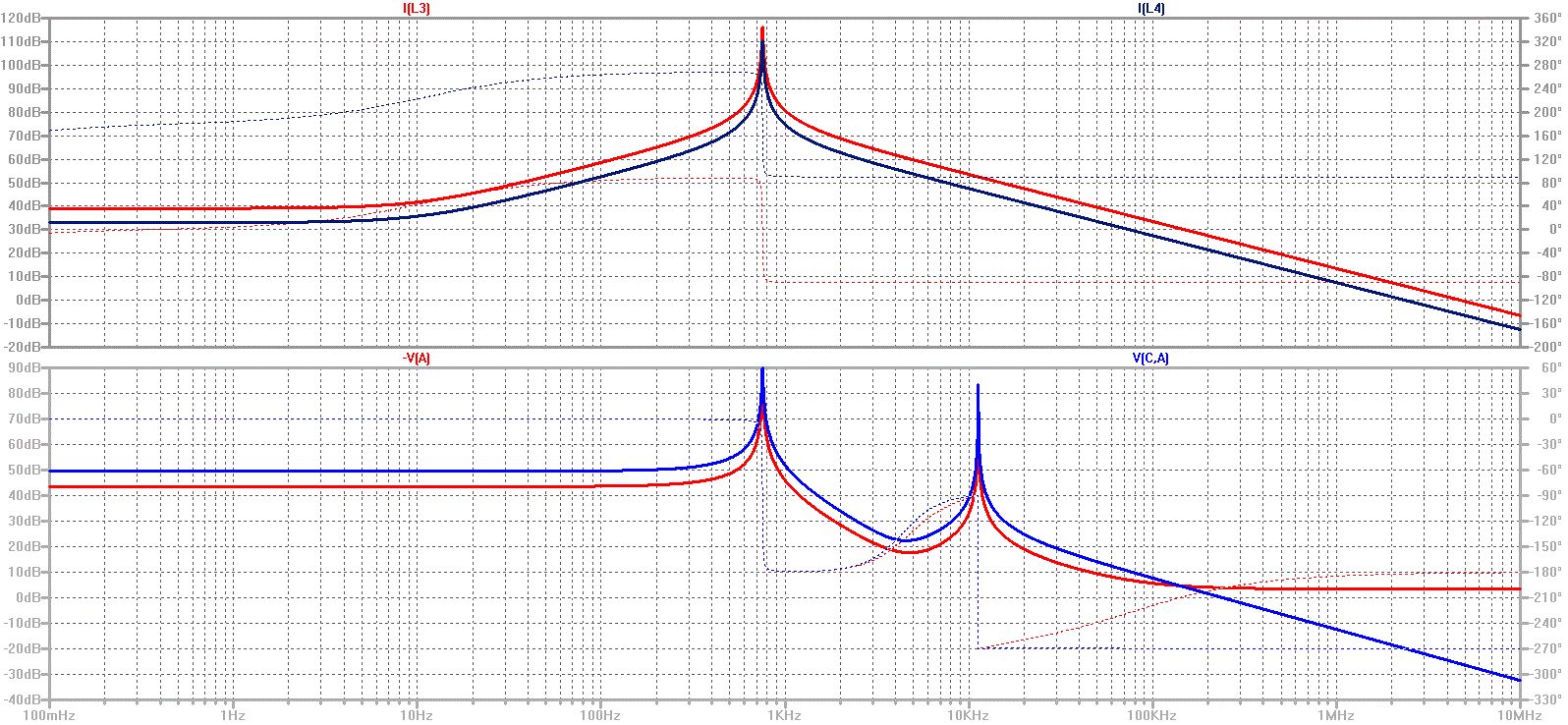 Hallo ! In einer Simulation habe ich einen idealen Trafo durch zwei 100% gekoppelte, große Induktivitäten (100H und 25H) modelliert. Wenn ich mir in der Schaltung die Spannungen A-B und A-C anschaue, so unterscheiden diese sich um einen Faktor 2, jedoch läuft dies bei großen Frequenzen auseinander. Ich verstehe eigentlich nicht wieso, denn ich habe extrem kleine parasitäre Widerstände und Kapazitäten verwendet. Für die beiden Ströme stimmt es. Ich habe dafür keine Erklärung...hat jemand eine Idee bzw. kann mir auf die Sprünge helfen? Danke