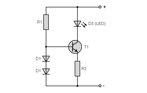 Die Temperaturdrift von T2 ist allerdings negativ: Wird der wärmer, leitet er besser und der Strom durch T1 nimmt ab. "Konstant" muss man wie immer so auslegen wie es die Anforderungen vorgeben. Und LEDs sind nunmal nicht extrem wählerisch.