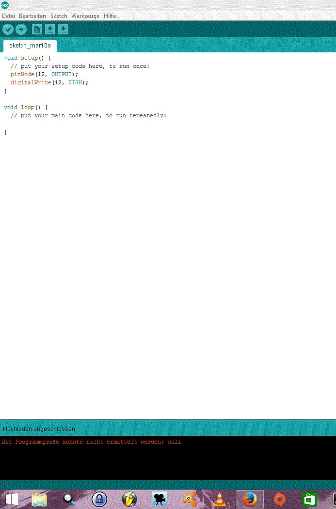 So muss das aussehen. unten rechts im Fenster muss das gewählte Board stehen. Das kann man über Werkzeuge -> Port auswählen (da erscheint bei mir jetzt nicht, da ich keinen Arduino angeschlossen habe) Wenn das funktioniert, können wir uns über das Programm weiter unterhalten