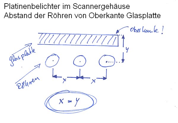 Das mit dem Unterleuchten hab ich mir auch schon gedacht irgendwie. Als Röhren benutze ich 3 von Reichelt, 8W haben die, sind die "Ersatzlampen" für den Belichter 1. Ca eine Bahndicke Tesafilmstreifen ist schon zwischen dem Layout und der Platine. Besten Dank vorweg! Pipimaxi