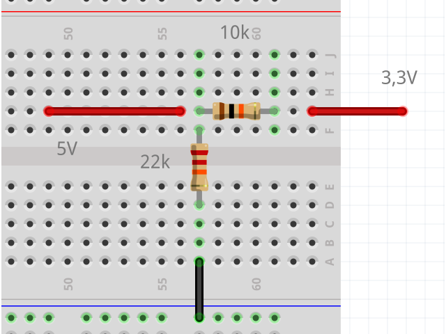 Guten Abend, ich wollte mal kurz fragen ob dieser Spannungsteiler genauso funktioniert wie ich ihn berechnet habe. Er soll 5V von einer Datenleitung in 3,3V umwandeln.