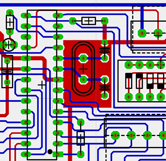 Auch, wenn Du die Platine selbst herstellst (ätzen oder fräsen), ist ein Ausfüllen möglichst aller freien Flächen mit einer Massefläche sinnvoll (Stichwort: Polygon, ist oben schonmal geschrieben worden)! Beim Fräsen hast Du dann weniger Werkzeugabnutzung, beim Ätzen weniger Chemikalienverbrauch. BTW: in der Abbildung des Layouts oben ist ein Kurzschluss/Überkreuzung von zwei Leiterbahnen - nur falls Du das noch übersehen hast...