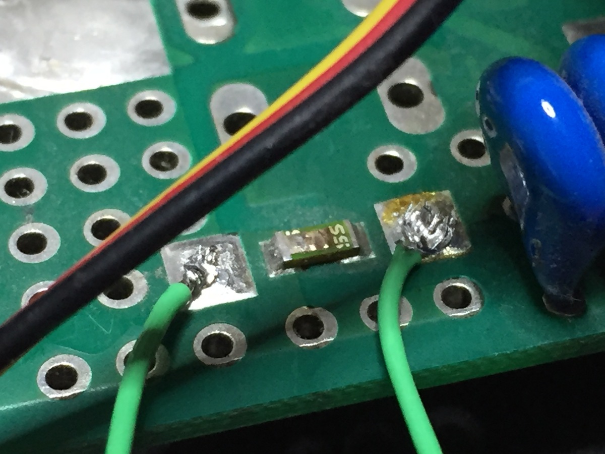 Das grüne Kabel sieht aus, als wurde es nachträglich aufgekleckst. Wo kommt das her, wo führt es hin? Die Sicherung liegt dazwischen.