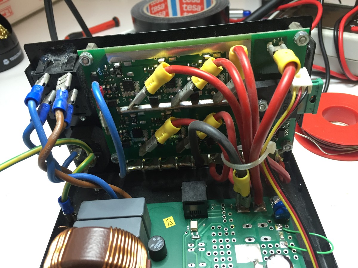 Hallo, anbei zwei Bilder des kompletten Ladegerätes. Der grüne Draht diente nur zur Überbrückung und Test. @Michael, mit der Schurter Sicherung könntest du recht haben weil auf dem über geblieben Teil der Sicherung kann man eindeutig "ss" erkennen welches eine 25A Sicherung markieren würde. Lg, Alex