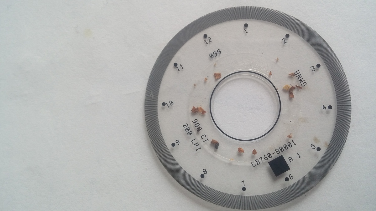 Mit Hilfe eine Lichtschranke zählt die Elektronik die Linien und weiss daher, wie viele Schritte der Motor gemacht hat.