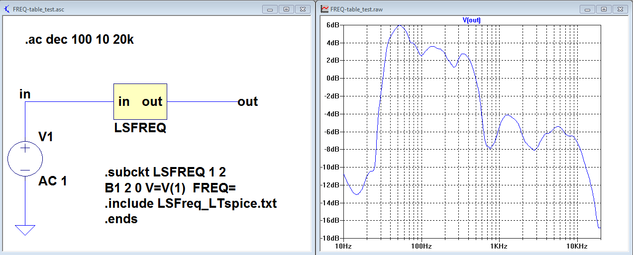 Hallo Michael, durch eine Modifikation der Textdatei kann man den Frequenzgang in LTspice mit einer Quelle erzeugen. Die Nullen stehen für 0° Phase. Inhalt der Textdatei: + 6.402 -8.5759 0 + 6.473 -8.6154 0 + 6.545 -8.655 0 ... Gruß Helmut