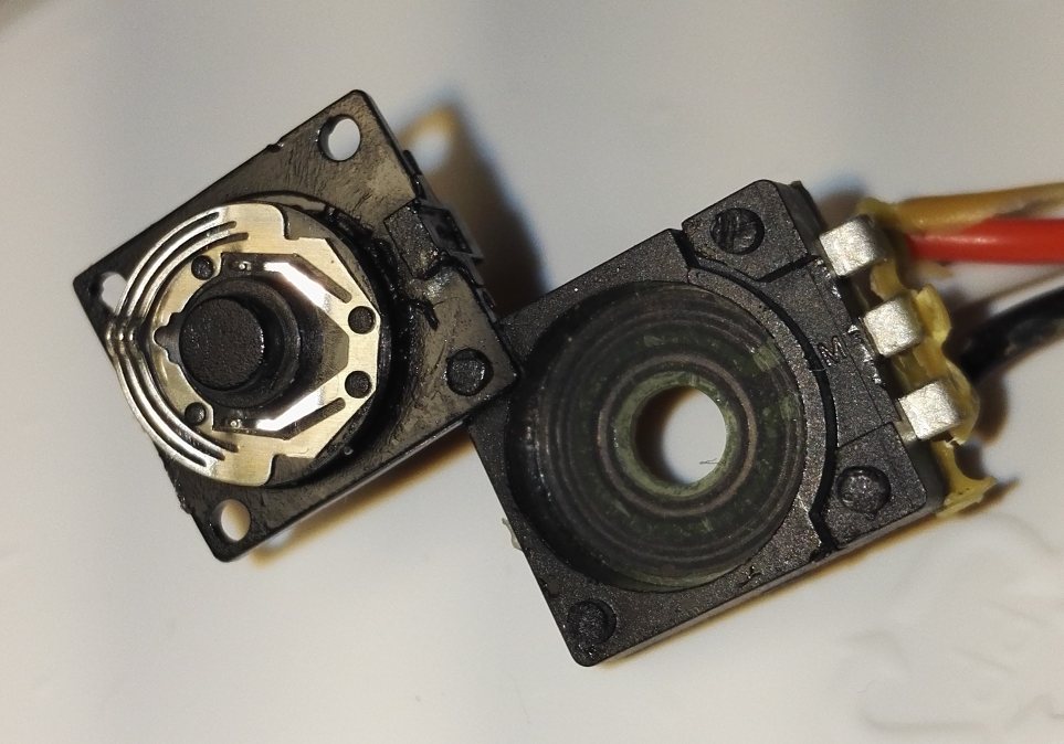 Hi Wenn schon Hardware ersetzt wird, warum dann nicht gleich eine berührungsfreie Abtastung? (wobei der Austausch, eigentlich, im Anfangspost ausgeschlossen wurde - Doppelpotis wurden nämlich bereits genannt) Die Schleifer der Potis werden verschleißen. Wenn auch eine optische Abfrage eine geringere Auflösung mit sich bringen wird - aber immerhin keine 50% 'am Stück' ohne Signal.