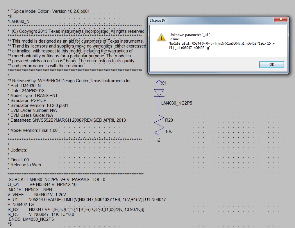 Hallo, schau dir mal die Files an. Ich musste die "angemeckerte Zeile" ändern damit es in LTspice läuft. Gruß Helmut