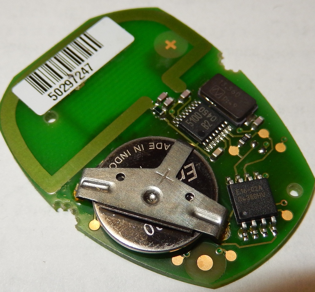 Hallo, Als Anlage findet sich die Platine unserer Fernbedienung für unseren PKW. Leider funktioniert diese nicht mehr. Wir sind damit dann zum Vertragshändler der es auch versucht hat aber ebenfalls gescheitert ist. Er konnte uns nur die Bestellung eines neuen Schlüssels für ca 280 Euro anbieten :( Habe mir dann einen gleichen Schlüssel gebraucht besorgt. Die Platine umgebaut und damit erneut hin. Nun wurde mir mitgeteilt das man gebrauchte nicht ans Fahrzeug anlernen könnte. :( NUR NEUE angeblich. Gut, auf der Platine befinden sich scheinbar nur 3 "wichtige" Bauteile, neben paar Widerständen wenn ich das richtig sehe. - einem Speicherchip (8-Pin) (E16-02A 04380HV) - scheinbar der Sendeelektronik (5100 B2 0450) - einem Quarz der die Frequenz (13.560 D:49) bestimmt. Leider konnte unser lokaler Elektroniker mir nicht behilflich sein herraus zu finden was das für ein Speicher sein könnte mit der Bezeichnung. Ich habe ja die leise Hoffnung diesen auslesen und dann auf eine andere FFB schreiben zu können. Damit sollte (sofern dieser nicht selbst defekt ist) die Empfänger Platine ja funktionieren und das Fahrzeug keinen Unterschied bemerken zwischen dem alten und neuen. Vieleicht kann mir hier jemand helfen dieses Problem "kostengünstig" zu lösen. Gruß und Danke Chris