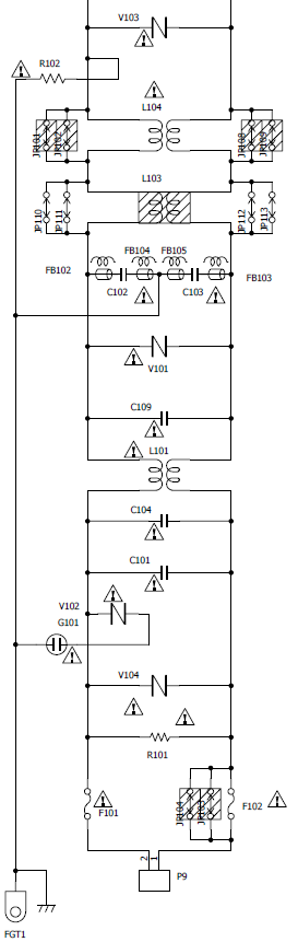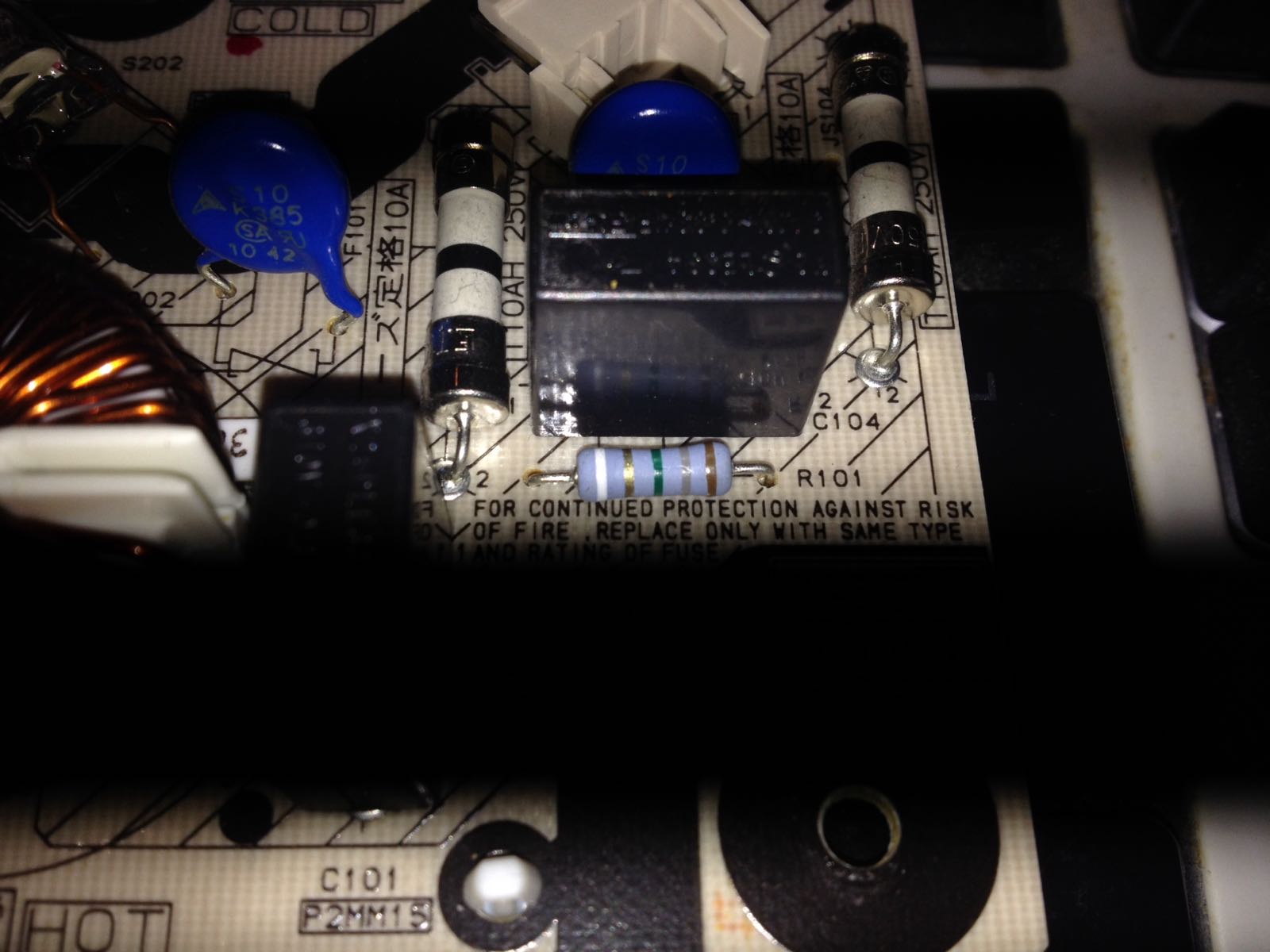 Man könnte ja einfach im Servicemanual nachsehen: R102 D0B1825JA033 M 8.2 MOHM J 1 W Und daneben der Warnhinweis: nur Originalteil verwenden. (Der Widerstand sitzt zwischen L und PE.)