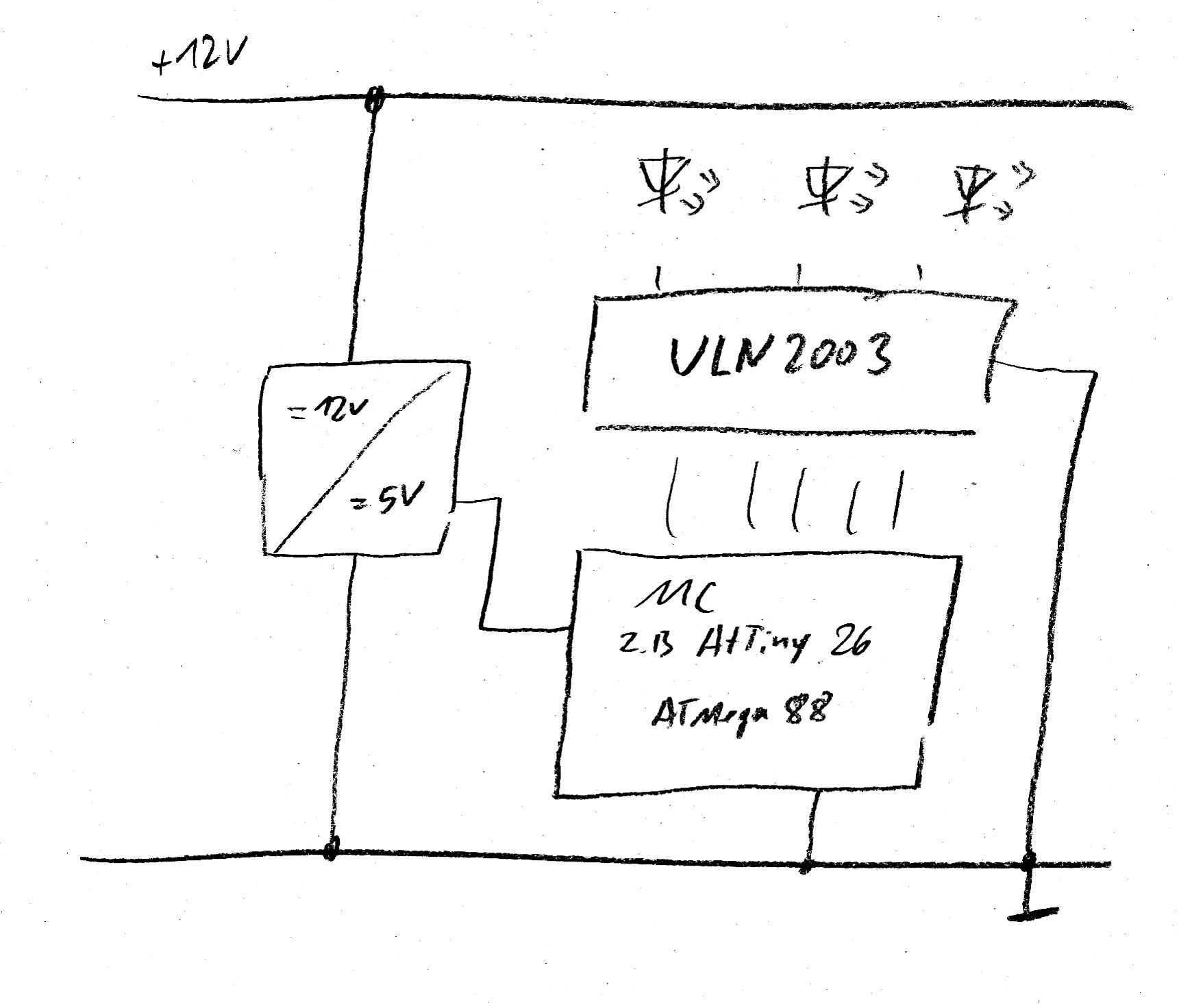 Also ich hatte die schaltung schonmal und mein Handy pc etc hats net gejuckt, und das wird mein handy nichtmehr Jucken da ich nurnoch Display und Motherboard habe(50W eingang versehentlich draufgegebenXD) naja kann man soetwas auch mit nem IC einfach Programmieren? also für das was ich Bauen will Braucheich ja nen IC mit: 1x12V+ und 6x12V- (die Stripes werden Über minuspol gesteuert) 2xKopfhörer + und 1xKopfhörer - Min. 2xAnschlüsse für Taster Ich hoffe ihr versteht was ich machen will :D