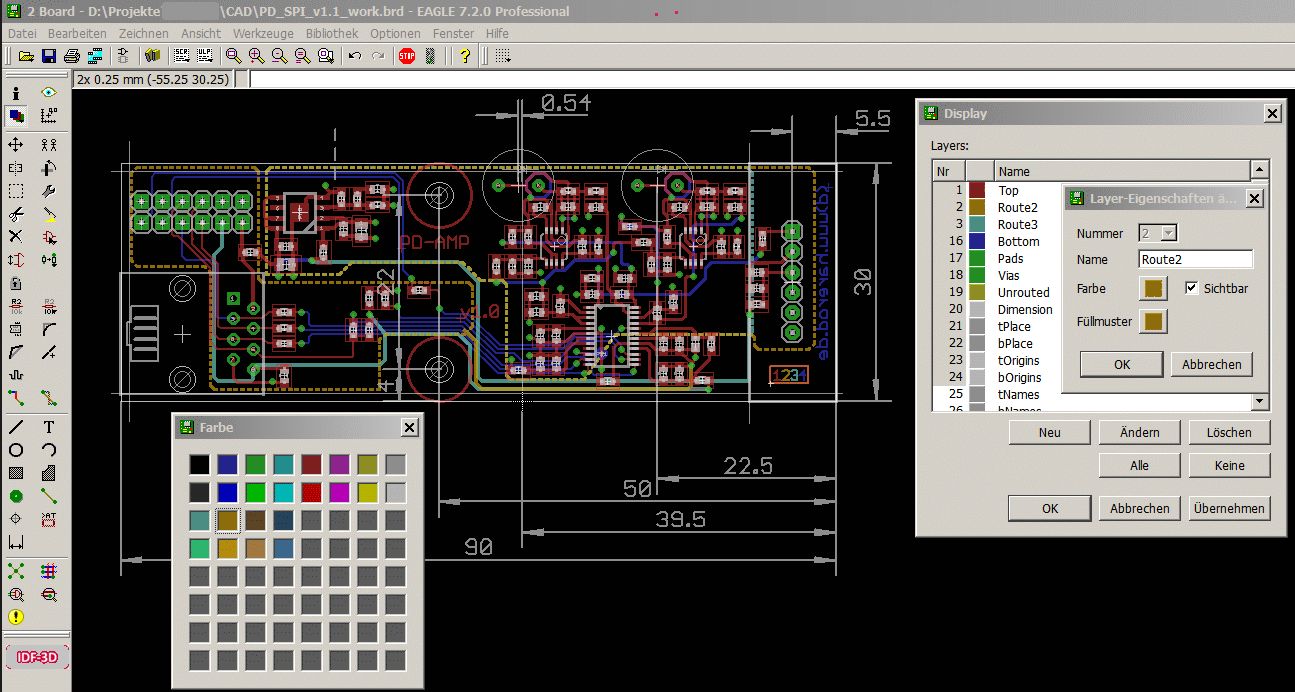 Häufig haben moderne PCs Grafikkarten, die mehr als 16 Farben darstellen können. Als ich von Altium nach EAGLE umgezogen bin, habe mir diese Erkenntnis zu Nutzen gemacht und eigene Farben definiert. Das Tutorial verrät einem, neben anderen Grundlagen, wie man das per Skript automatisiert.
