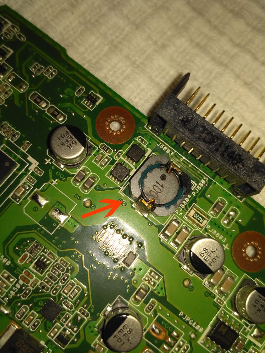 Spule mit vermutlich 10uH. Aber an sich sieht die gut aus, haben sie halt bei der Herstellung mit den Vergussmassen etwas gekleckert... Und bei der Dicke des Drahtes müssten andere Bauelemente (zB. die beiden Mosfets links davon oder der R020 rechts) fette Schmauchspuren haben, wenn da was faul sein sollte.