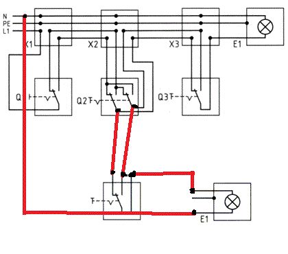 > Skizze der Kreuzschaltung Bilder sagen mehr als Worte. Wooo schließt Du jetzt was an? WS KS WS seriell ------------ ----------- / \ L>---------* O *-----+ \ / | ------------ ----------- | | N>-------+-X-+------------------------------------+ Lampe Quelle Beitrag "Wechselschaltung und Kreuzschaltung"