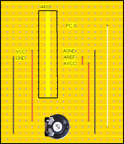 Hallo Günter, Ich habe einen Poit als Widerstand zwischen GND und VCC angeschlossen. Der Schleiferkontakt hab ich als Spannungsteier an den AD Wandler gehängt. Genau so wie in deinem Attachment habe ich meine Schaltung auch aufgebaut (wenn auch nicht auf einem Lochraster, da ich mir ein Developerboard geätzt habe). Nur leider siehst du, dass bei mir das so nicht so gut funktioniert. Am besten du verfolgst mal den Beitrag hier weiter ;-) Vielleicht kannst du das mal so aufbauen und dann berichten, obs so funktioniert hat! Viel Erfolg! Grüße Steffen PS: Vielleicht gibts hier im Forum noch jemand, der mir bei meinem Problem weiterhelfen kann.