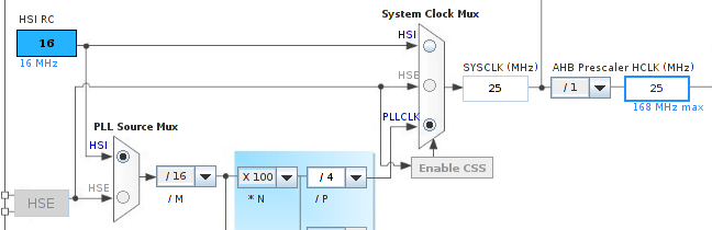 Servus, wie kann ich beim stm32 die Taktfrequenz auf 25Mhz einstellen?