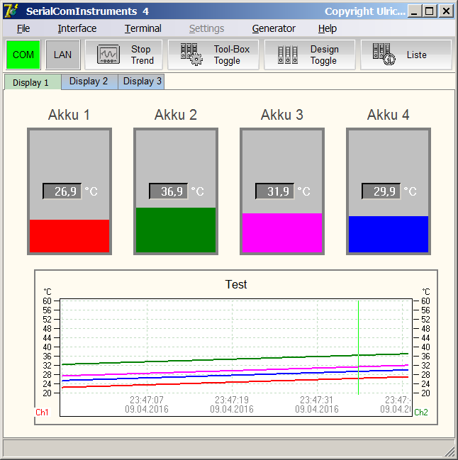 Neben den wichtigen Vitaldaten der Akkus zeichne ich auch an vier