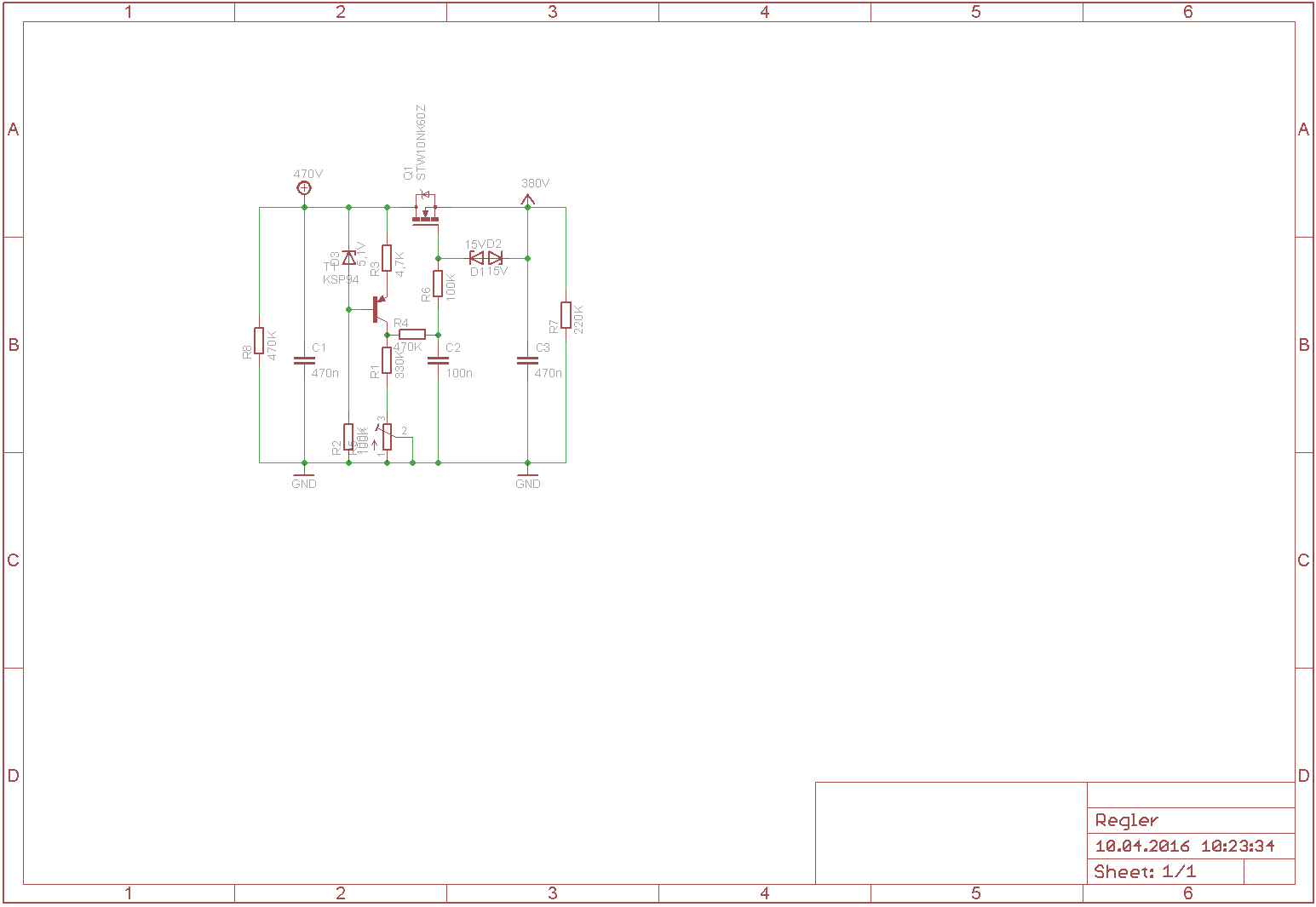 Alle verwendeten Mosfets vertragen 600V, am Eingang liegen maximal 470V im Leerlauf. Auch ist ein Widerstand parallel zum Ausgang vorhanden, habe ich leider nicht im Plan eingezeichnet. Der bildet eine kleine Mindestlast und entläd mir die Kondensatoren beim Abschalten. Ugs beim einschalten habe ich noch nicht gemessen. Wie gesagt funktioniert die Schaltung problemlos, wenn sie mit Last eingeschaltet wird.