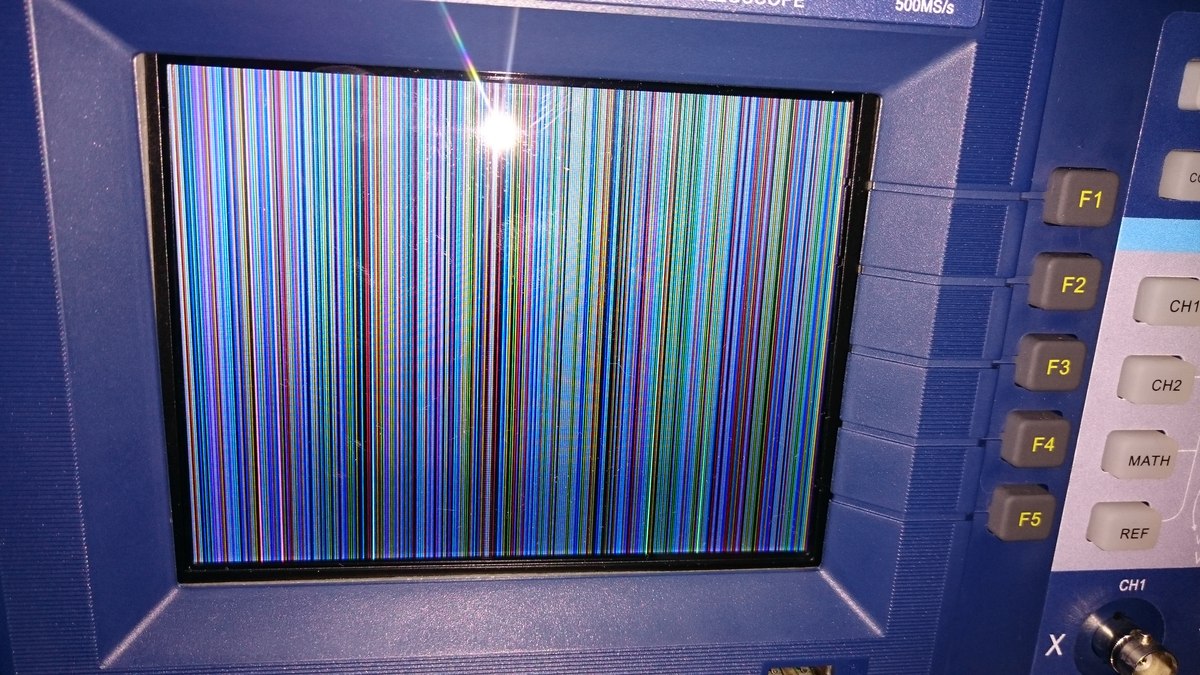 Hallo, ich habe ein gebrauchtes DSO bekommen. Das Modell ist ein Uni-T UTD 2082C. Es lief dann auch für einige Minuten. Ich habe dann mit dem Testsignal ein paar Einstellungen getestet. Und dann wurde plötzlich der ganze Bildschirm bunt gestreift. (siehe Bild) Hatte schonmal jemand ein ähnliches Problem? Gibt es vielleicht einen Schalter oder Jumper zum hardresetten oder eine Tastenkombi beim Startup? Hab leider weder in den Manuals noch beim googeln etwas gefunden. Gruß