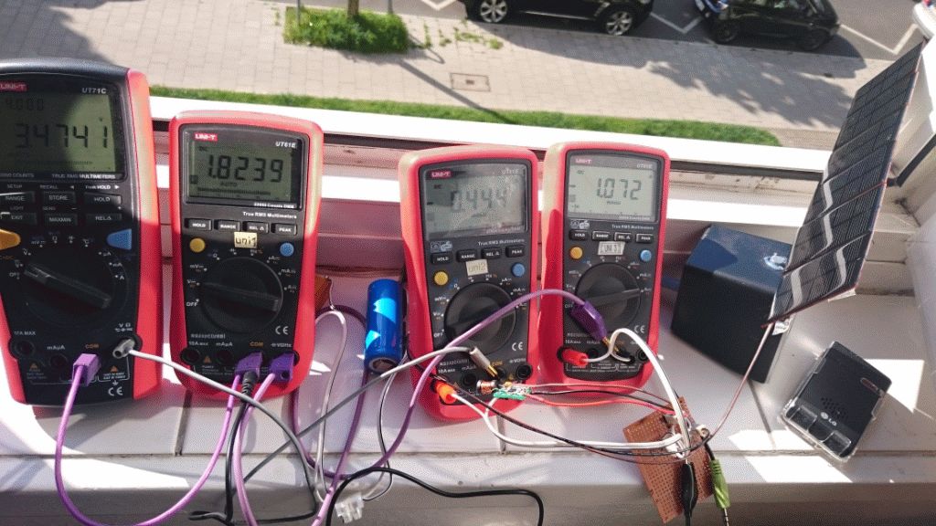 Hi Nick, ich habe in meiner Studienzeit mal ein ähnliches Konzept verfolgt. Ausprobiert habe ich das ganze ersteinmal mit einem teildefekten Kindle, seit dem liegt das ganze noch etwas auf der Halde, da die Zeit fehlt, weiter zu machen. Ich habe damals den LTC3105 verwendet, der in seinem Datenblatt auch eine Beispielsschaltung für Li-Ion Erhaltungsladung beinhaltet. Da konnte ich damals rund 150mA Ladestrom in den Akku schieben. (Feb. 2015) http://cds.linear.com/docs/en/datasheet/3105fb.pdf Zellenspezifikation etc. suche ich heute Abend noch einmal.. Was die Baugröße angeht, habe ich hier einmal angehangen, was mir mit humaner Handlötung möglich war. Da geht sicher noch etwas. Vielleicht ist der Chip ja auch was für dein Vorhaben. Bei Bedarf habe ich noch ein paar der Platinen im Keller. Grüße, Phil PS: Den gibt es auch als nicht QFN, der lässt sich dann auch besser Löten. Zu finden bei Conrad.