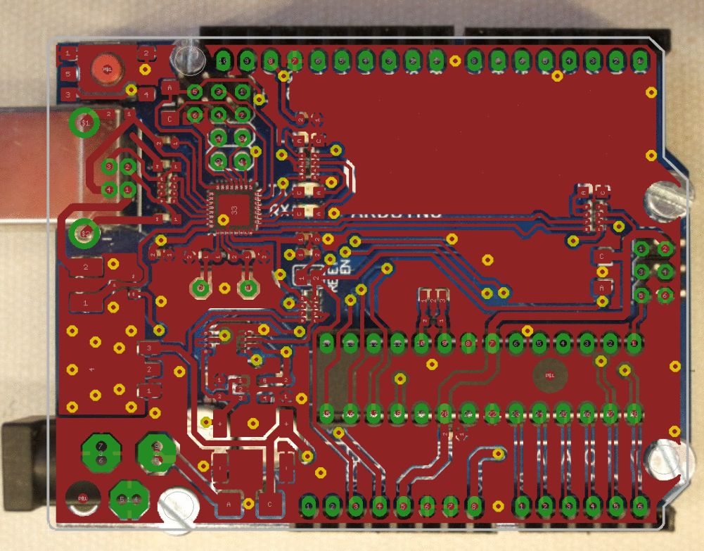 Ja, scheint irgend eine ältere Board-Version zu sein, die die da genommen haben. Original Layout (Rev3-02) sieht etwas anders aus. Click mal auf das GIF, das zeigt dir dein Board und das Eagle-Layout im 0.5s Wechsel... ;-)