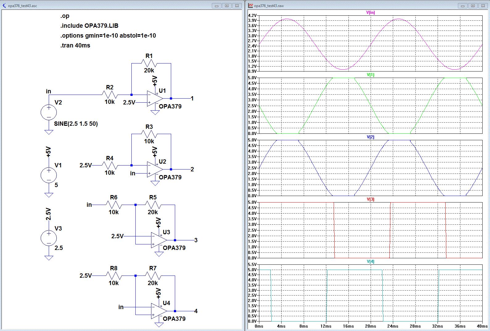 Hi, ich habe es jetzt noch in LTSpice simuliert mit dem UniversalOpamp2. Es ist qualitativ unterschiedlich bei 50Hz und 1kHz. Und noch seltsamer, wenn beides gleichzeitig simuliert wird, aendert sich die 50Hz Simulation. Und mit startup, also Startwerte von 0, natuerlich auch ein anderes Ergebnis. Aber wahrscheinlich das Beste.