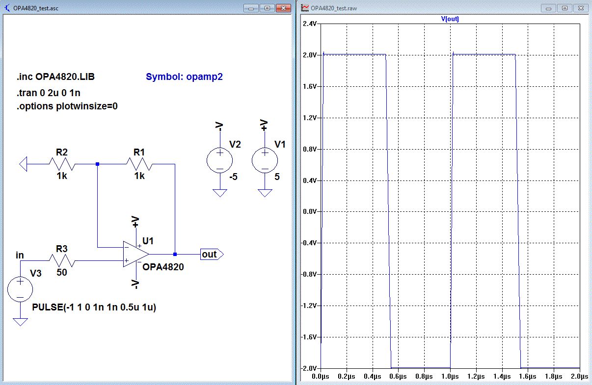 Hallo, Ich habe gerade extra das Symbol modifiziert um dann festzustellen, dass die Simulation nur Unsinn liefert. Habe dann entgegen dem Kommentar im OPA4820.LIB file die klassische Pinreihenfolge von opamp2 genommen und es läuft wie erwartet. Da haben sich die Kommentarschreiber von TI vertan. Gruß Helmut