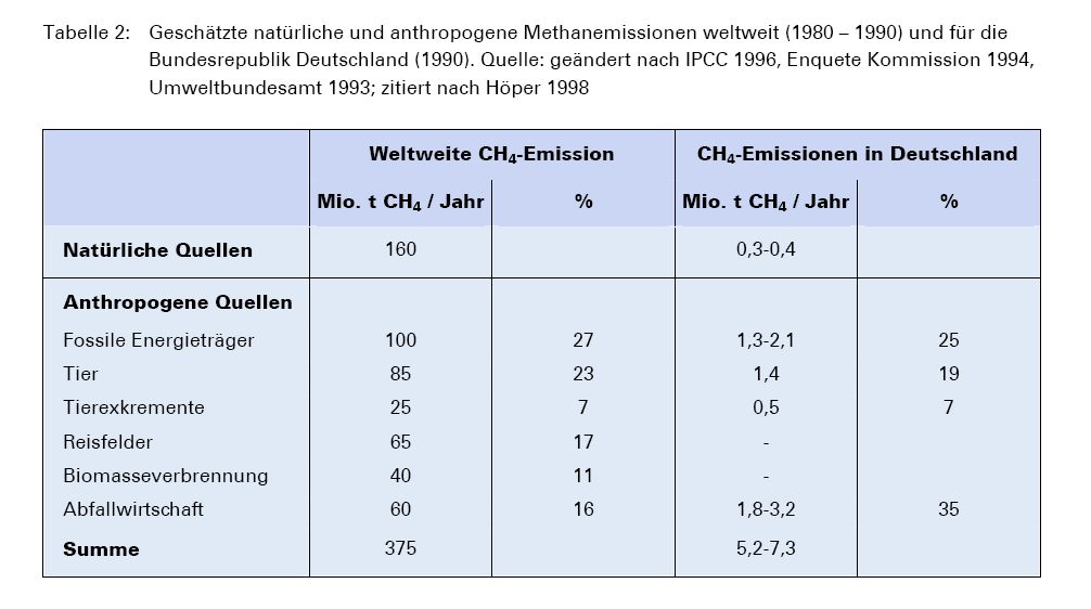 Eine Aufstellung der CH4 Quellen... (Die kürzliche Entdeckung dass auch Pflanzen während des Wachstums (und nicht erst beim verfaulen) CH4 abgeben zeigt dass noch vieles im Fluss ist.)