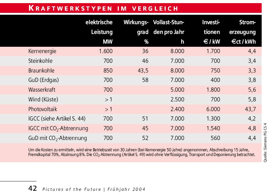 Hmm... ich wundere mich dass bisher noch keiner die eingangs prognostizierten Strompreise von 5-6cent/kWh für zukünftige Dünnfilm Photovoltaik Systeme aufgegriffen hat. Vielleicht schätze ich die Bedeutung dieser Kennzahl ja falsch eine aber für mich bedeutet diese Kennzahl eine fundamentale Veränderung der Speilregeln des Energie Monopolies. Warum? Um diese Zahl einordnen zu können vergleiche mann sie mit den Kosten anderer Kraftwerksart (Anhang): 3.3cent für Braunkohle, 4.4cent Kernenergie, 5.6cent Wasserkraft, 5.8cent Wind(Küste) und 3.6cent/kWh Primärenergie aus Rohöl (70$/barrel, 10kWh pro Liter) Warum sollen man sich die CO2 Problematik der Kohle, die Unsicherheit der Kernkraftwerke, die begrenzte Ausbaukapazität der Wind und Wasserkraft und Biomasse antun bzw. noch 40 Jahre auf die (ungewisse) Kernfusion hoffen wenn man durch Dünnfilm PV (*) diese Probleme nicht hat und das ganze zu (fast) vergleichbaren Preisen? (* ich mein natürlich nicht den in den letzten Jahren hochsubventionierten Schwachsinn (zur Abwechslung mal Grüne Klientelklüngelei vom feinsten) mit Mono/Poly/Amorphen Silizium PV mit Strompreisen von 40cent und mehr) Das ganze steht und fällt doch mit der Frage wie schnell die Ölproduktion zurückgeht und wie schnell im Vergleichszeitraum der Weltenergiebedarf zunimmt. Wenn ich die eingangs angeführte Studie (und andere) richtig verstanden habe wird das in den nächsten 30-40 Jahren (d.h. wir werden es erleben) passieren während gleichzeitig der Weltenergiebedarf um den Faktor 3 nach oben geht. Eine gigantische Deckungslücke, ein mehrfaches der heute installierten Kraftwerksleistung, für die in diesen 30-40 Jahren ersatz geschaft werden muss. Wenn man sich die Plan und Bauzeiten von Kraftwerken anschaut hat man also nicht mehr sehr viel Zeit um weitere Sandkasten spielchen zu treiben und auf ungewisse Technologien zu hoffen. Warum sollten wir uns um den wachsend Energiebedarf der Welt scheren? (Viele träumen ja immer noch den Grünen Gartenzwergtraum von der Energieautonomie durch ein bischen Wind/wasser/Sonnen/Bio Energie + plus einem kräftigen Schuss Energieeinsparung und die Entwicklungländer bekommen den Bauplan für einen Solarkocher geschenkt und schon sind alle Probleme gelöst) Ganz einfach, selbst wenn wir Energieautonomie erreichen könnten, wird das zu erwartende Hauen und Stechen der Anderen schon dafür sorgen dass auch wir (natürlich als ungewollter Kolateralschaden) unseren Watschenanteil abbekommen werden, wenn wir das Problem nicht rechzeitig lösen. Wir können zwar keine Handys und hippe iPods bauen aber zumindestens von Systemtechnik und Grossanlagenbau verstehen wir etwas, wir wären also schön blöd.... Verschlafen wirs also?
