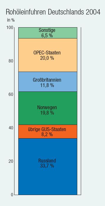 Hier noch ein paar Hintergrunsinfos... Rohöleinfuhr Deutschland, Quelle Mineralölverband D. Grossbritanien wird in den nächsten wegen Erschöpfung zurückgehen, Norwegen wird sich ausweiten. Wir können es uns also aussuchen ob Russland oder die OPEC uns erpressen darf/wird.