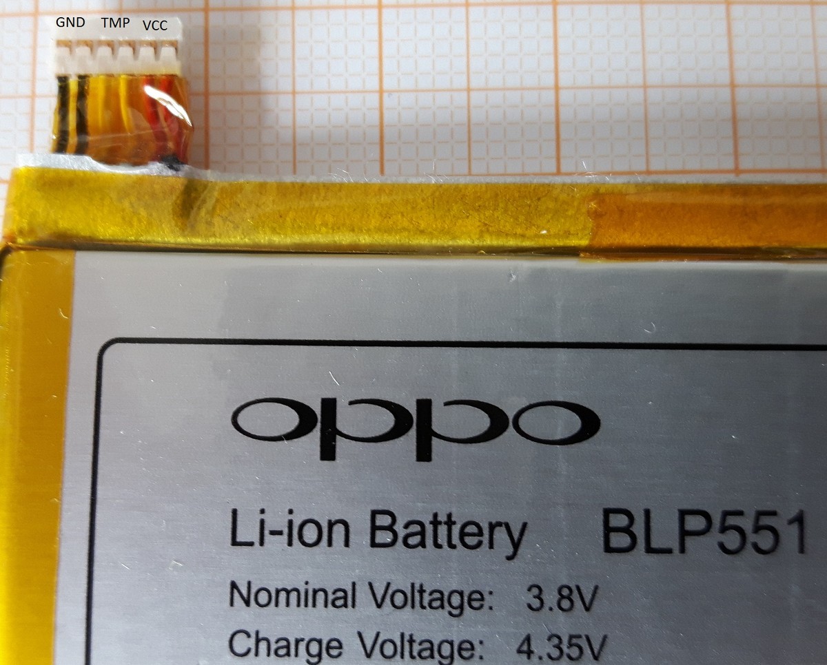 Hallo, da ich gerade mein totes OPPO Smartphone recycle, bin ich auf einen 6-poligen Li-Ion Akkuanschluss gestoßen: Es sind insg. 6 Pins vorhanden (2x rot, 2x gelb, 2x schwarz) Normalerweise sind es ja 3: VCC, GND + Sensor Die Farbbelegung ist auch wenig überraschend: Rot -> VCC Schwarz -> GND Gelb -> Widerstand zu GND 1k (Tippe NTC od. PTC) Widerstand jedes Pärchen zueinander ist auch 0 Ohm, es fließt auch keine Strom zwischen den (gleichen) Pins. Meine Frage ist, warum jeder Pin 2x ausgeführt wird (fail save? Gegen 2 Zellen spricht jede Messung sowie die Typenangabe)? Akkutype ist: OPPO BLP551 bzw: Sony 13 W US375968H 2 1259DR079VE26B Google spuckt leider kein Datenblatt aus. Danke u. LG Matthias
