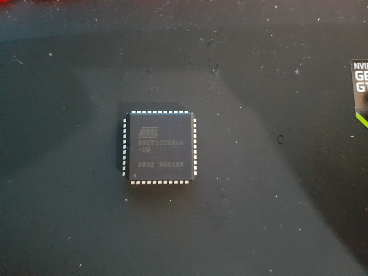 @ FeoFeri Man muss fast sagen: Es ist unmöglich, diese Bezeichnung NICHT zu finden. Aber nur "fast". Fast alle Suchmaschinen, wie Google und deren "Kunden" Startpage und DuckDuckGo haben die Eigenschaft auch ähnliche Seiten zu finden. Der Anfänger hat aber das Problem, auf Anhieb herauszufinden ob das Ergebnis irgendwas mit seinem Suchwort zu tun hat. Und er weiss nicht, was von dem Buchstaben und Zifferngewusel welche Bedeutung hat. Und er kennt auch wenig bis gar keine der allgemein bekannten Typen. Du wirst öfter vor dem Problem stehen, deswegen hier einige Tips anhand des konkreten Falls: 1. Da der Hersteller bekannt ist, lohnt es sich oft die Bezeichnung bei ihm einzugeben. Trifft man nicht auf Anhieb, ist es sinnvoll die nachfolgenden Tipps zu befolgen. 2. Man nimmt die Zeichenfolgen zunächst zeilenweise als Suchbegriffe. Also nicht alles, was man als Lateinische Schrift und Ziffern auf dem Bauteil erkennt hintereinander eingeben. Die Aufschriften auf der, nach dem Auf- bzw. Einlöten nicht mehr sichtbaren Fläche, sind fast nie relevant. 3. Die erste Zeile unter oder neben dem Firmenkennzeichen ist meist die Modellbezeichnung. 4. Diese Modellbezeichnung setzt sich fast immer aus mehreren Teilen zusammen, die aber möglicherweise nicht durch Leerzeichen getrennt ist. Die Bezeichnung wird von links nach rechts immer spezifischer. D.h. links steht ein Teil, der für eine ganze Gruppe von Modellen steht. Rechts davon, z.B. die Geschwindigkeits- oder Taktklasse. Dann die Spannung. (Das sind nur Beispiele). Es lohnt sich also, bei der Suche zunächst mit der ganzen Zeile zu beginnen und dann nach und nach rechts Zeichen wegzulassen. Irgendwann kommt man auf einen exakten Treffer und auch auf ein Datenblatt. Im Datenblatt stehen dann fast immer auch Beschreibungen der restlichen, nun weggelassenen Zeichen und man kann damit überprüfen, ob man das richtige erwischt hat. In Deinem Fall bekommst Du mit "89C51CC03UA-UM" oder auch "89C51CC03UA" oder "89C51CC03" bei Startpage schon als ersten Treffer das Richtige, sogar beim richtigen Hersteller. Mit "89C51CC" bist Du zwar nicht bei dem genauen Modell, aber schon wieder beim richtigen Hersteller und in der richtigen Produktkategorie. "89C51" führt auf "AT89C51", was zumindest wegen des beim selben Treffer genannten "Atmel" ein paar Glöckchen sanft klingen lassen sollte. Ein paar Zeilen darunter ein Treffer, der nach den Unterschieden zwischen Modellen fragt: "What is the major difference between 8051, 89c51 and 89c52?" Das sollte in Zukunft zumindest die Hypothese bei Dir erzeugen, dass Du damit auf dem richtigen Weg bist. Ich hoffe, dass hilft Dir ein wenig in der Zukunft.