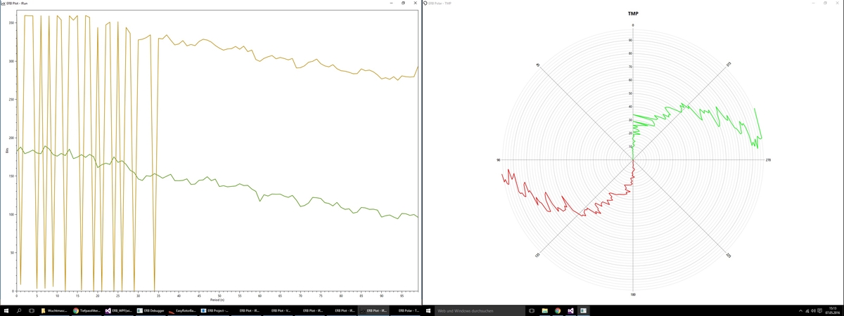 Moin! Ich bekomme von einem externen Kompassmodul einen fertig berechneten Kompass-Wert (0.0 bis 359.9 Grad) über eine serielle Schnittstelle (als ASCII mit einer Dezimalstelle und einem Zeilenende als Abschluss). Der Wert ist allerdings mit einem Rauschen von etwa 2 Grad Spitze-Spitze überlagert und taugt noch nicht zur direkten Anzeige - das wackelt zu viel. Da die Messfrequenz ungefähr 30 Hertz beträgt und mein Messobjekt nicht besonders dynamisch ist, könnte ich über ungefähr 20 bis 40 Werte tiefpassfiltern. Das habe ich auch schon umgesetzt und es funktioniert auch ganz gut, die Anzeige schwankt nur um 0.1 Grad. Allerdings gibt es an einer Stelle (logischerweise) ein Problem: Wenn der Wert bei Nordkurs zwischen 359 bis 1 Grad schwankt, erhalte ich als Ergebnis aus dem Tiefpaßfilter 180 Grad als Anzeige. Das ist nun ganz und gar ein unerwünschtes Verhalten! Wie kann man diese Filterung eleganter lösen, so dass ein stabiler Kompasswert herauskommt, insbesondere wenn sich das Messobjekt langsam dreht? Sprich - wie filtert man einen Messwert, der eine Diskontinuität im Bereich hat?