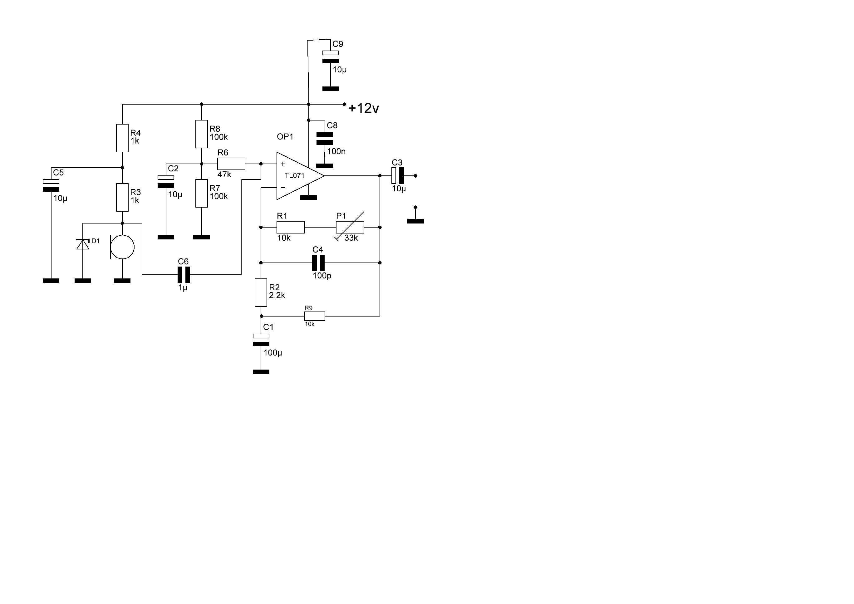 dolf schrieb: > dieser verstärker tut´s ohne probleme. > zd ist nach der max. spannung vom mic zu wählen. Die Schaltung ist ganz gut, Z-Diode verhindert vor allem Beschädigung des Mic durch Verpolung durch C6 beim Ausschalten, eine normale Diode reicht. Verstärkungsfaktor reicht. Bloss den TL071 würde ich durch etwas moderneres ersetzen, dann kommt man mit geringerer Versorgungsspannung aus.