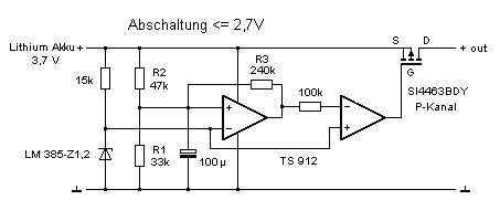 Hi, die Beitrag "Re: Problem mit Akkuwächter auf Basis des LM393" Schaltung funktionier schon, unschön ist nur, dass die Rückkopplung direkt auf die Reference geht. Grüße